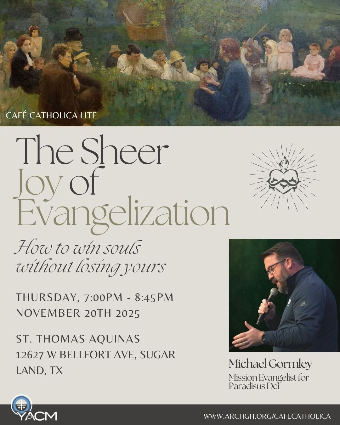 Please consider advertising your ministry or business with us at Café Catholica. We are anticipating between 40-80 young adults to attend each session. Café Catholica Lite 2025-2026 events will be held in various parishes and locations throughout the Archdiocese of Galveston-Houston. The event will run from 7:00 pm to 8:45pm. The highest time for foot traffic will be before the talk from 7:00-7:30pm.