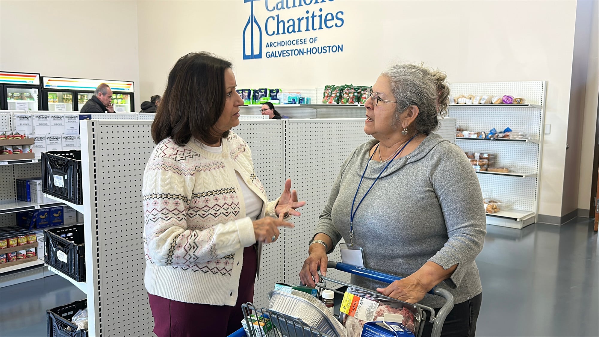 Retiring CEO Cynthia Nunes Colbert, at left, said she will miss meeting those who visit Catholic Charities three food pantries, including Trini’s Market at the Mamie George Community Center in Fort Bend. (Photo by Catholic Charities of the Archdiocese of Galveston-Houston)HOUSTON — For more than a decade, Cynthia Nunes Colbert dedicated her life to serving as a voice for the poor and vulnerable as president and CEO of Catholic Charities of the Archdiocese of Galveston-Houston. After much prayerful discernment, she decided the time is right to retire.