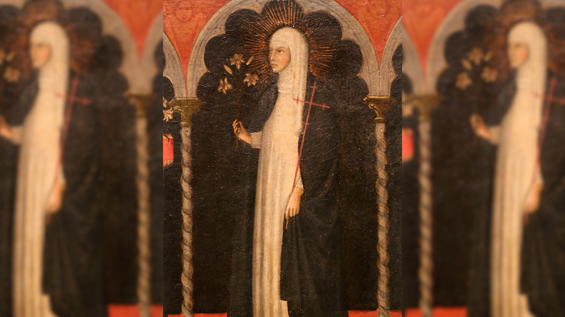 A detail from Andrea di Bartolo’s late 14th‑century panel painting shows St. Margaret of Castello. St. Margaret is a patron saint for people with vision impairment and disabilities. The tempera‑and‑gold artwork, created circa 1394–98, is housed in the Gallerie dell’Accademia in Venice. (Photo by Sailko, licensed under Creative Commons Attribution 3.0 Unported)