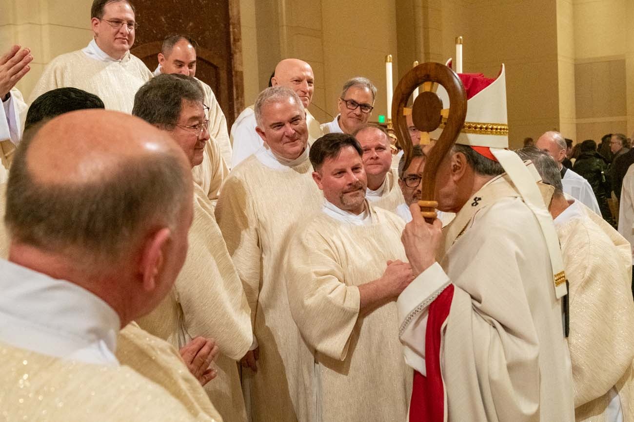 Cardinal DiNardo thanked the men of diverse backgrounds, including a convert from Islam to Christianity, a NASA engineer, a Vietnamese refugee, and a mission worker in Latin America, for their continuing service and thanked their wives and families.