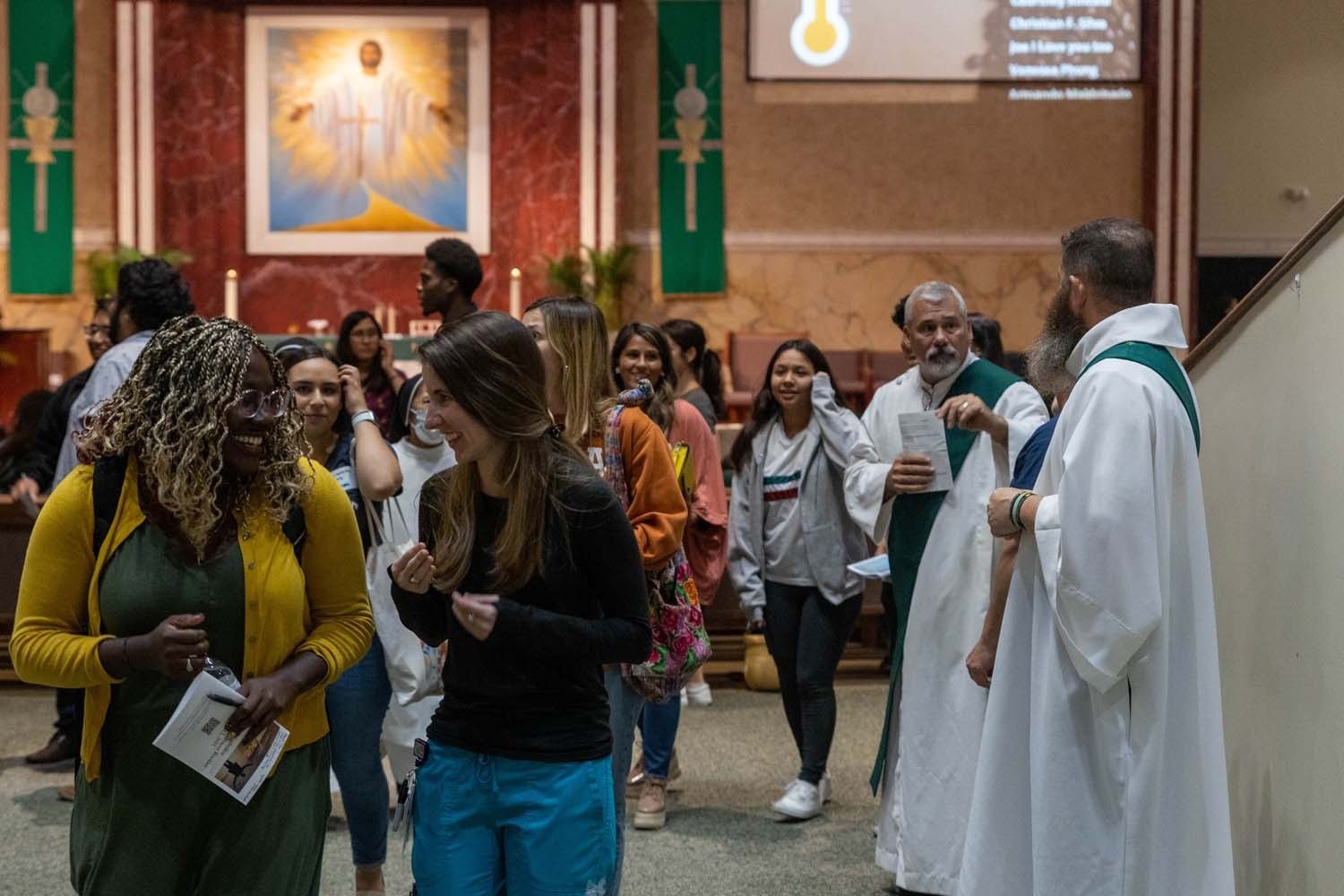 “As a commuter student, having a place to go to between classes or after long days has been a blessing,” said Sanchez. “I’ve had the opportunity to attend daily Mass during the week, receive a free lunch, attend Adoration, and visit the chapel that is always available for me to have a moment with God in a quiet space. I have created lifelong friendships and found mentors to help me grow as a young adult in my relationship with God and guide me on my spiritual journey.”