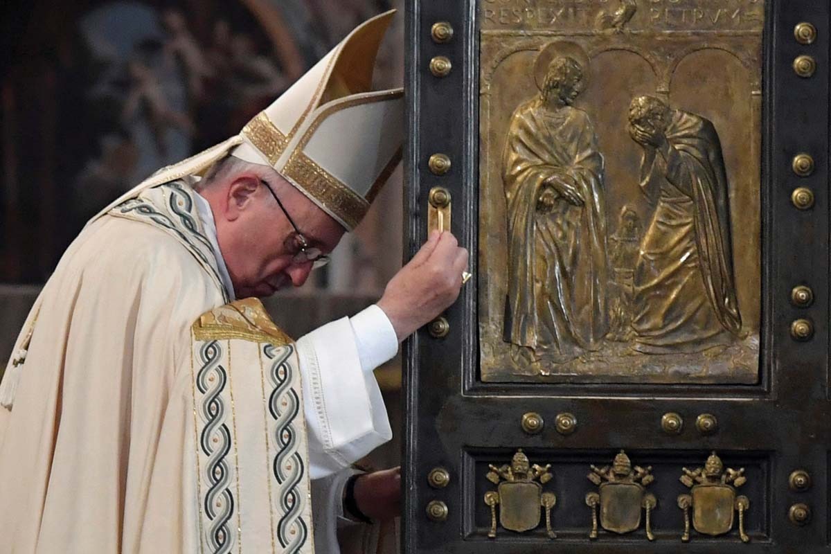 Pope Francis closes the Holy Door of St. Peter’s Basilica to mark the closing of the jubilee Year of Mercy at the Vatican in this Nov. 20, 2016, file photo. The pope wrote a letter explaining his hopes for the Holy Year in 2025. (CNS photo)