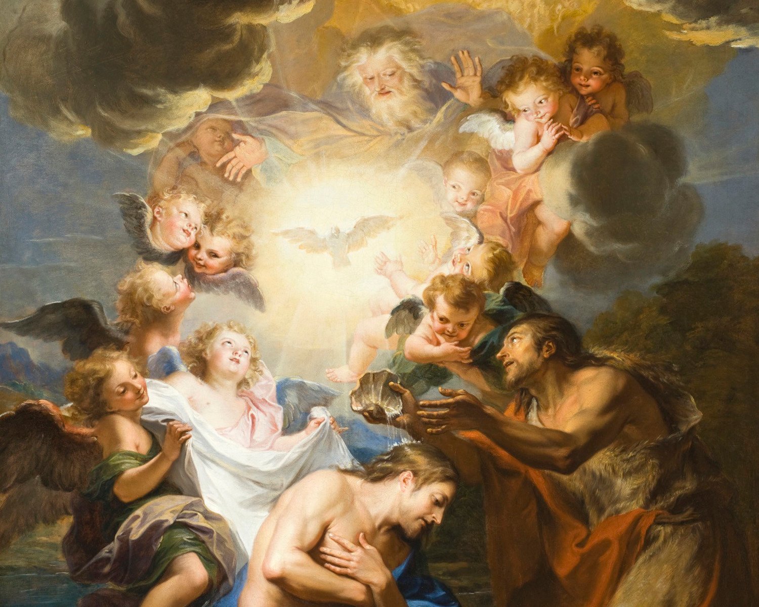 A 17th-century oil on canvas painting by Antoine Coypel depicts the Baptism of Christ. (Photo courtesy of the Los Angeles County Museum of Art)