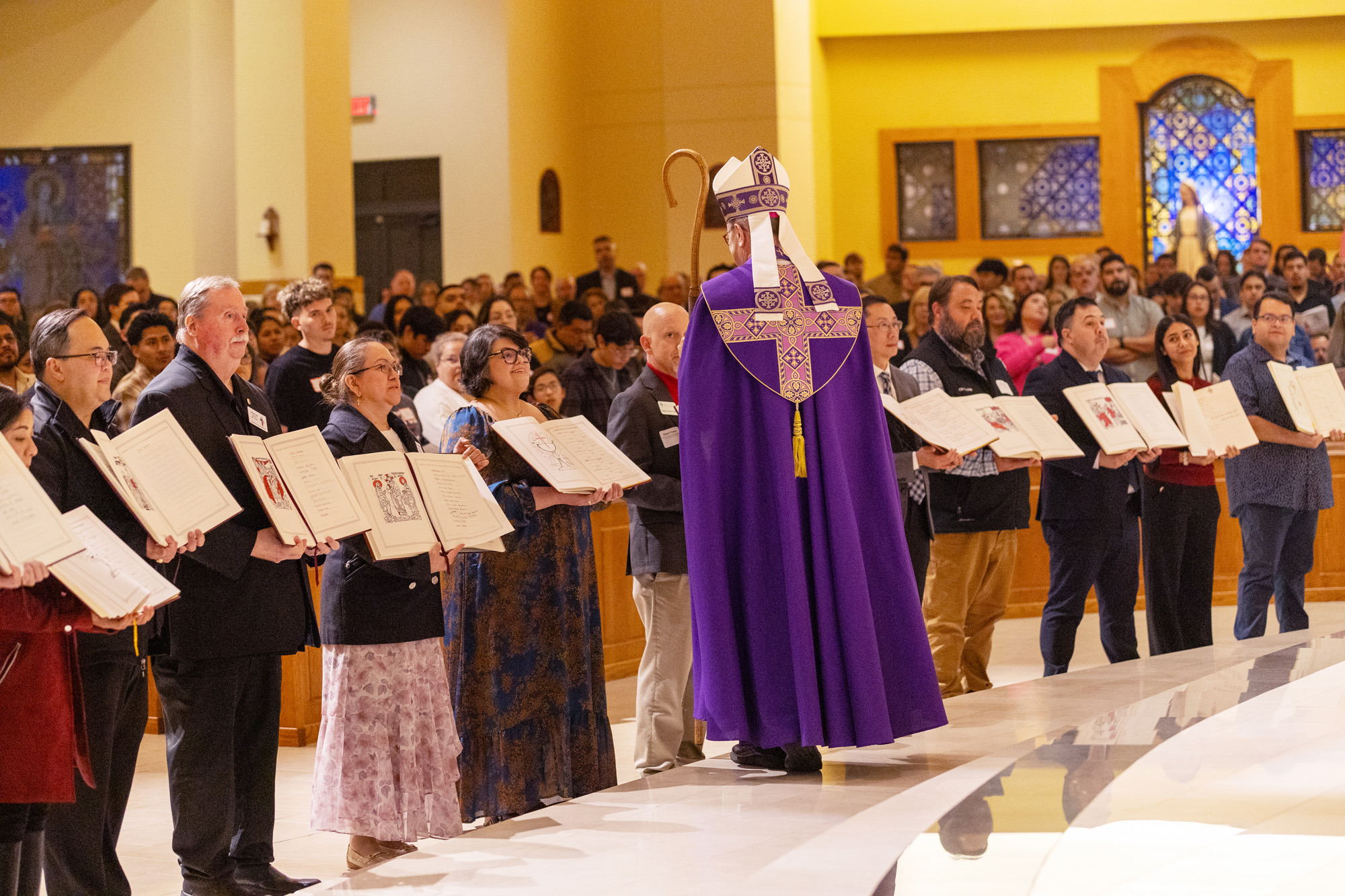 Archbishop Joe S. Vásquez presides over another Rite of Election Liturgy at Christ the Incarnate Word Parish in Houston, also on Feb. 22. Nearly 3,000 were welcomed at six Rite of Election Liturgies around the Archdiocese that same day. (Photos by James Ramos/Herald)HOUSTON — The sound began softly, a shuffle of feet and pews as the first names were called.