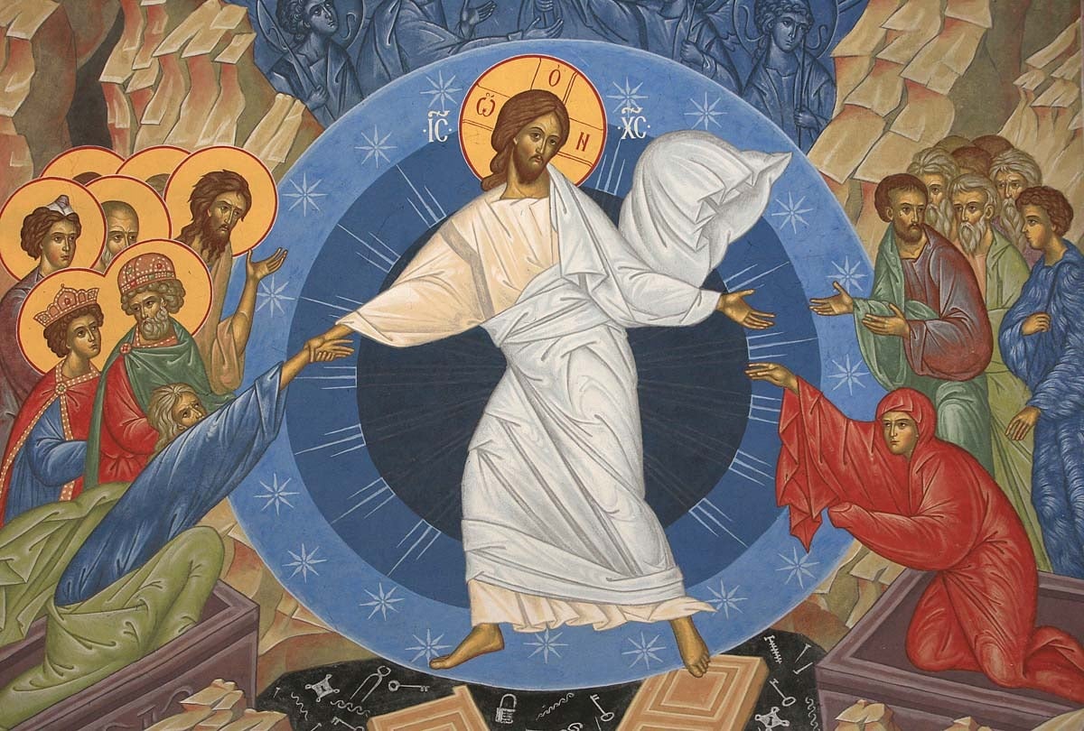 It calls back to the great Easter proclamation, the Exsultet: “This is the night when Christ broke the prison bars of death and rose victorious from the underworld.”