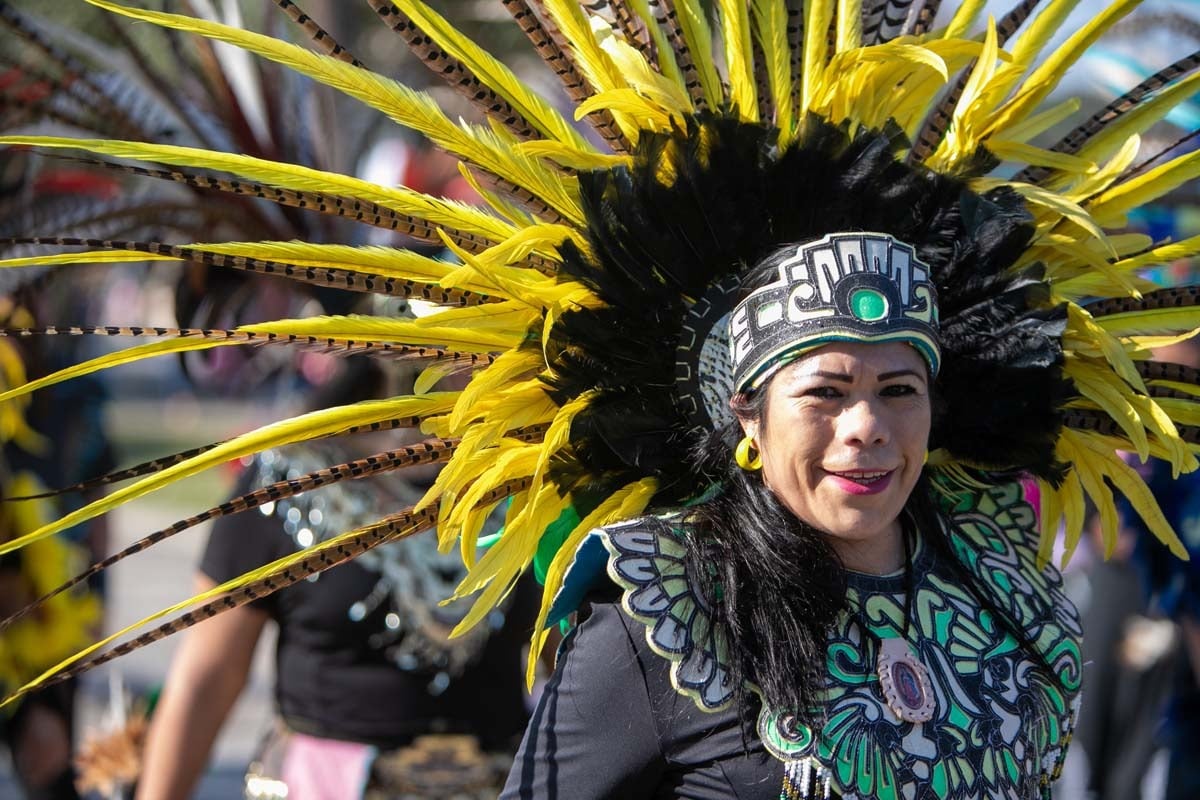 Una mujer vestida como bailarina tradicional azteca se presenta durante la procesión de Nuestra Señora de Guadalupe 2019 en Houston. El evento regresa el 5 de diciembre. (Foto por James Ramos/Herald)HOUSTON — Al igual que los eventos en muchas Iglesias se están reanudando ya que los fieles han recibido la vacuna del COVID-19, los preparativos para las festividades de Nuestra Señora de Guadalupe están comenzando con entusiastas organizadores y danzantes Aztecas que ensayan para la celebración el 5 de diciembre.