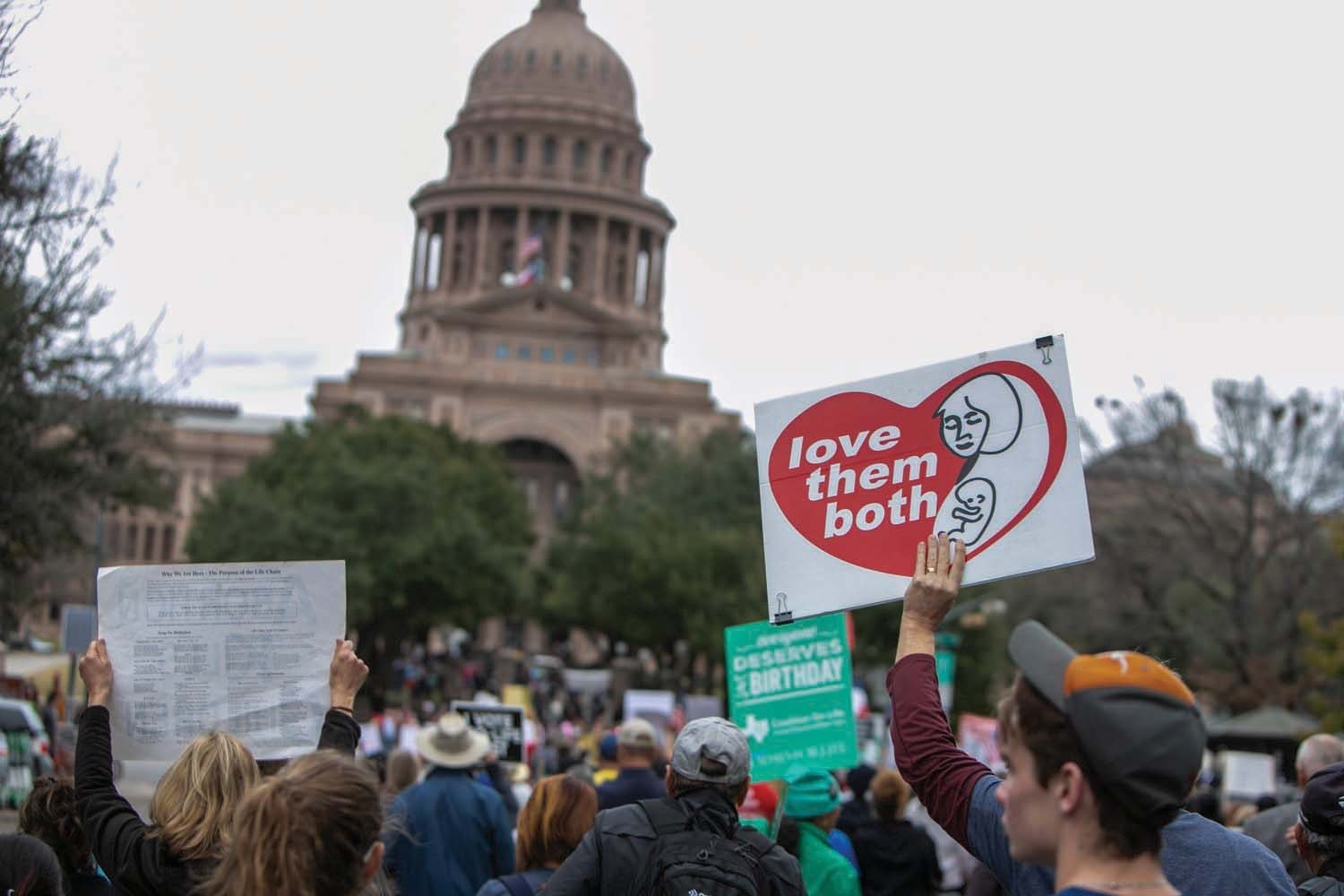 A protestor carries a sign that says “love them both” during a prolife march in Austin in 2020. On May 2, a draft of the Supreme Court of the United States’ opinion was leaked signaling that the court was leaning toward overturning Roe v. Wade. (File photo by James Ramos/Herald)