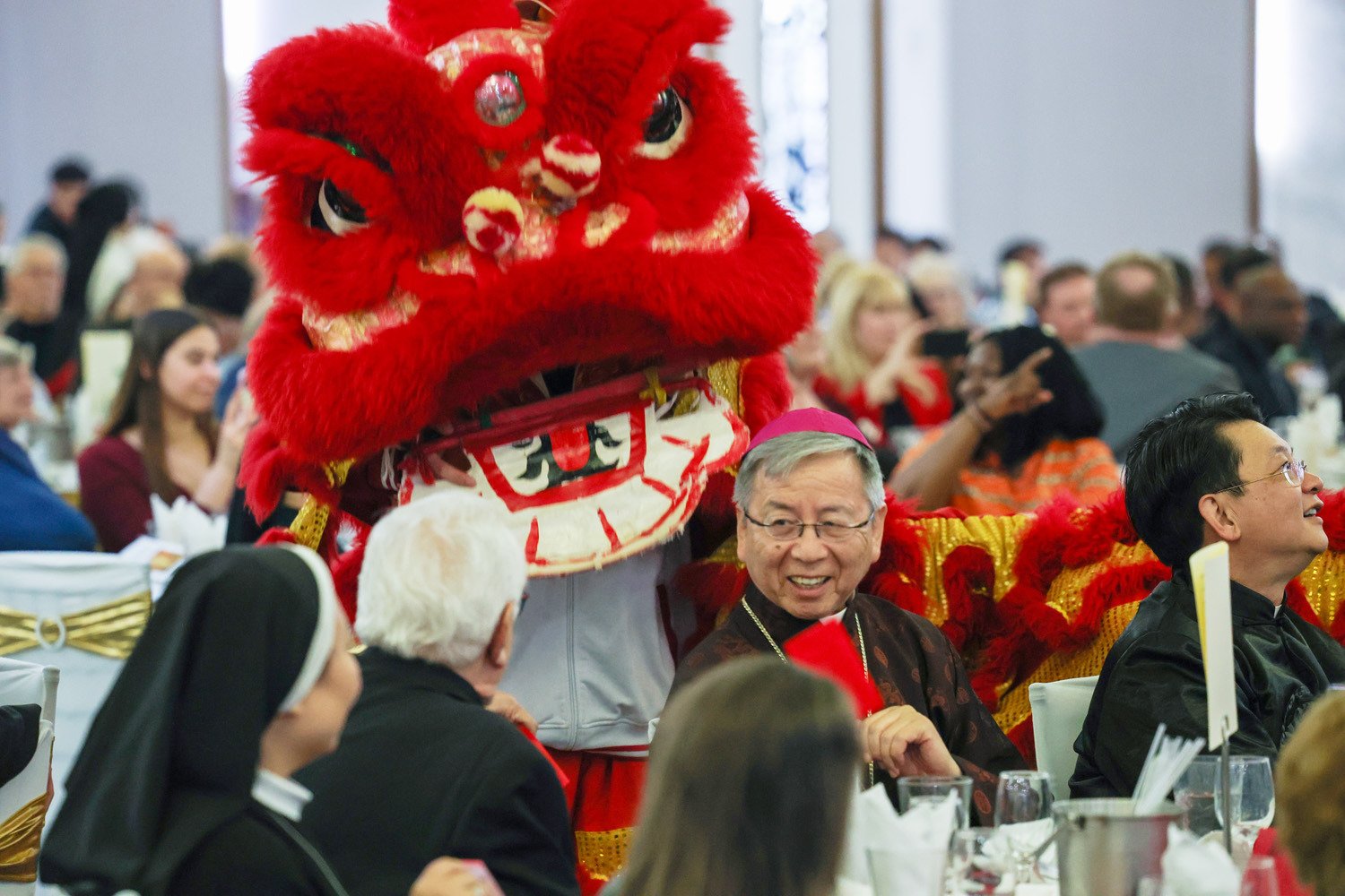 Past recipients of the Our Lady of China Award have been Daniel Cardinal DiNardo and the late Auxiliary Bishop George A. Sheltz, who received the award posthumously. Part of the evening included entertainment and a video of Lunar New Year celebrations held at the Vatican, with Pope Francis greeting dragon and lion dancers at St. Peter’s.