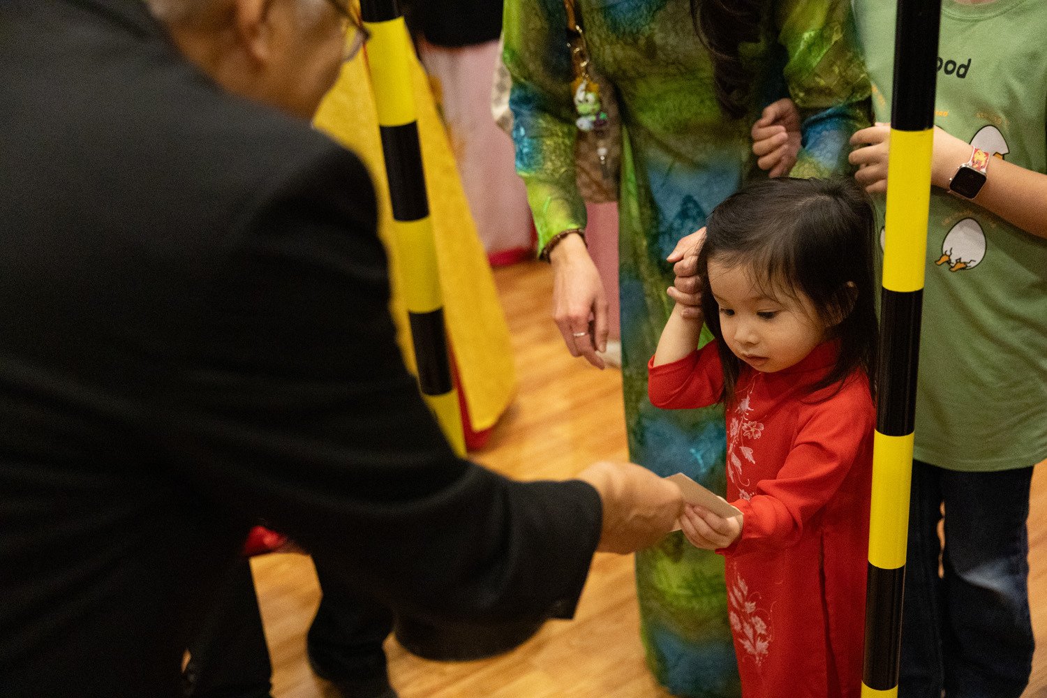 Our Lady of Lourdes, Christ the Incarnate Word and other parishes also hosted lion dances and festive events to ring in the Lunar New Year. At Christ the Incarnate World, Father Thu Ngoc Nguyen, pastor, and Father Joseph Tien Phuong Bui, parochial vicar, greeted parishioners and visitors in the parish hall with the traditional “lì xì,” the red envelope seen in many Lunar New Year celebrations.