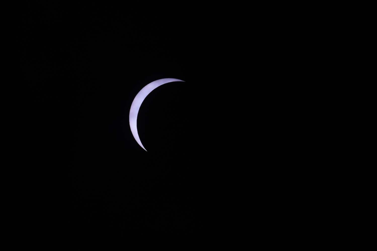 “At first, we couldn’t see the sun at all until the eclipse actually started, and the clouds began to part. For about 30 to 45 minutes, we saw glimpses of the different stages, seeing it appear and disappear again,” Aylor said. “The students outdoors started cheering whenever the sun and moon peeked out.”