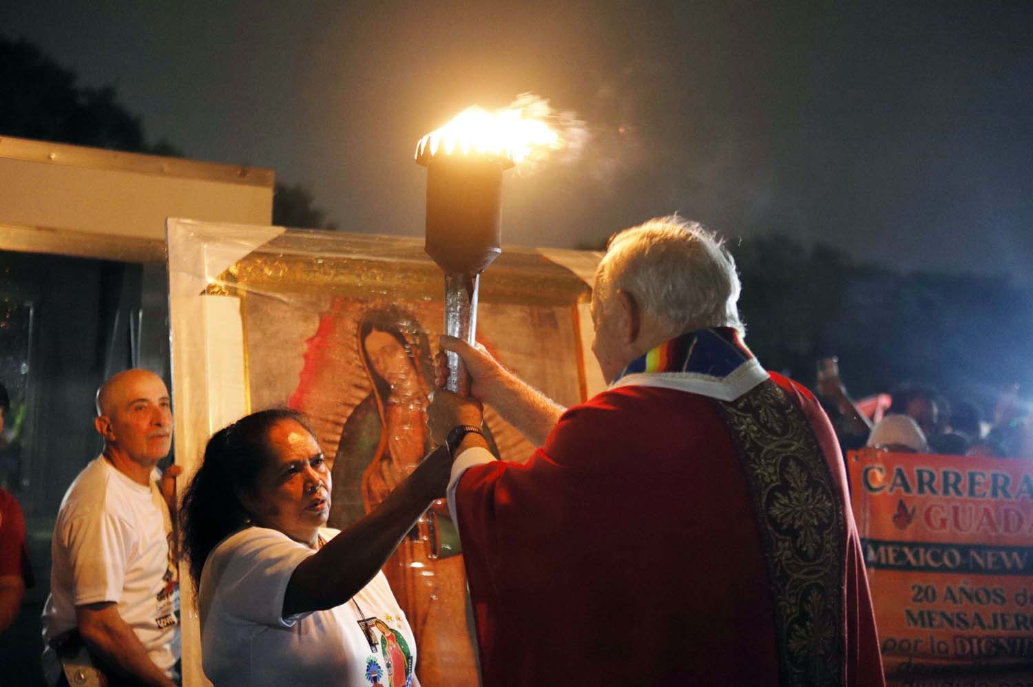 Crowds of faithful turned out to venerate the images and pray for the intercession of Our Lady and St. Juan Diego. On sidewalks and country roads, as well as city thoroughfares, Catholic devotees carried the torch following the images, which were transported in a trailer with massive windows from parish to parish.
