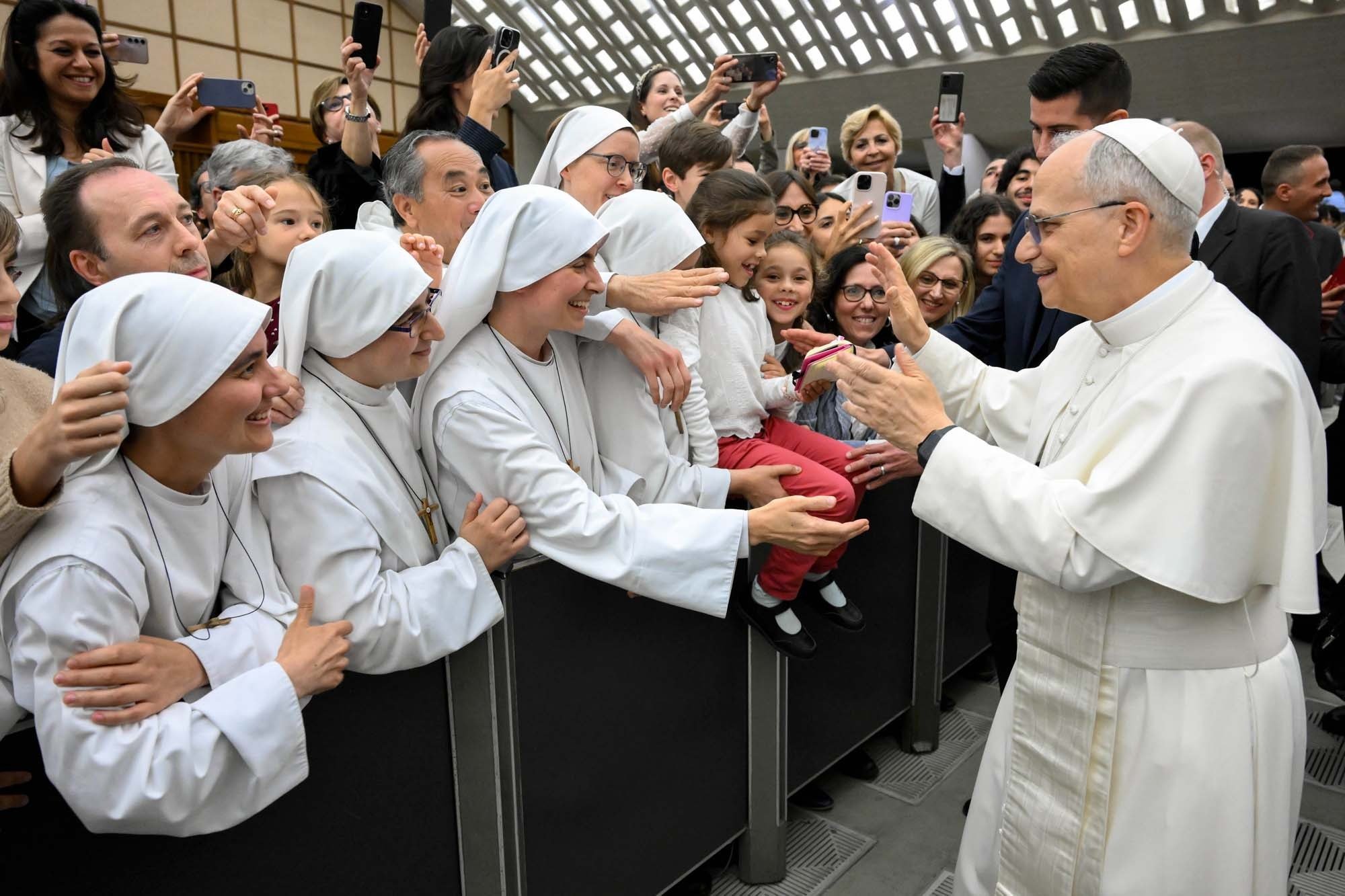 Pope Leo XIV greets a group of religious sisters during a recent May 24 meeting at the Paul VI Audience Hall at the Vatican. A new Loyola Institute of Ministries program based in New Orleans is supporting women religious in the Gulf Coast region, offering spiritual formation, renewal and ministry instruction. (CNS photo/Vatican Media)