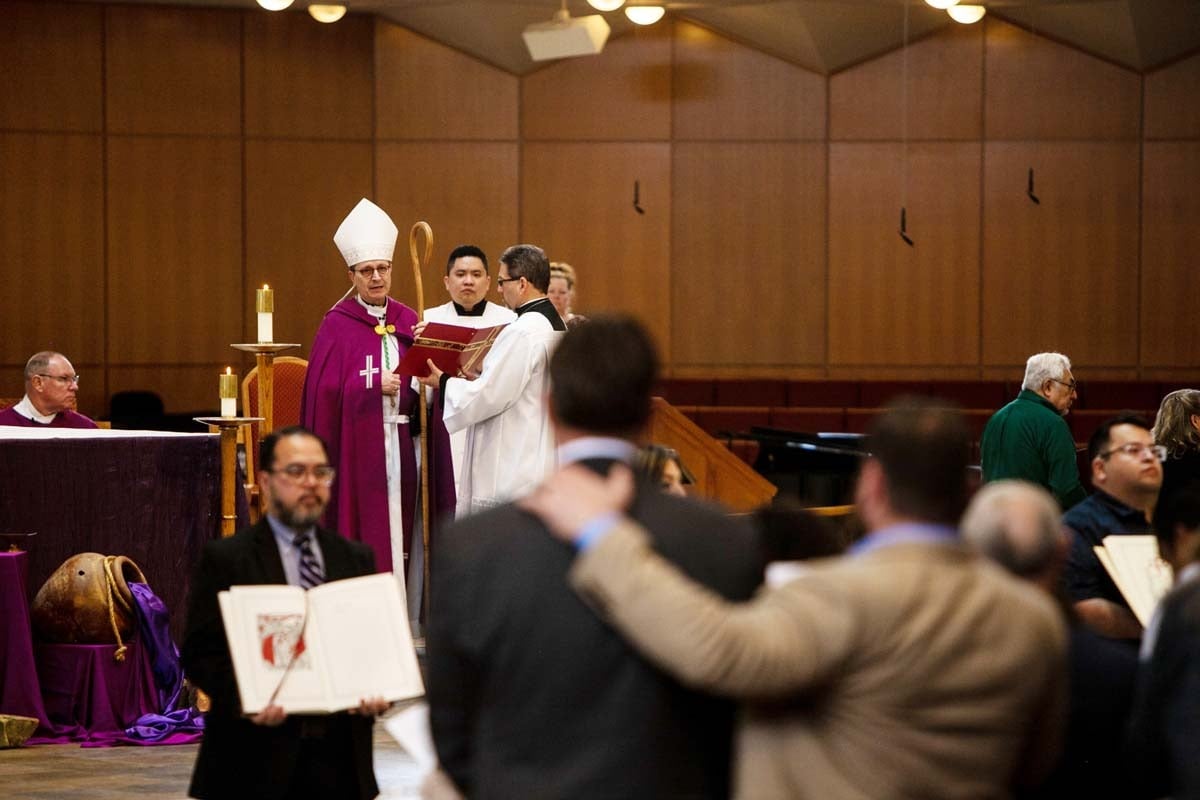 A unique moment happens at each Rite: representatives from each parish announce the names of those intending to join the Church to the bishop, who then views these names in the Book of the Elect. After the Rite, the bishop signs the book as a witness to their faith.