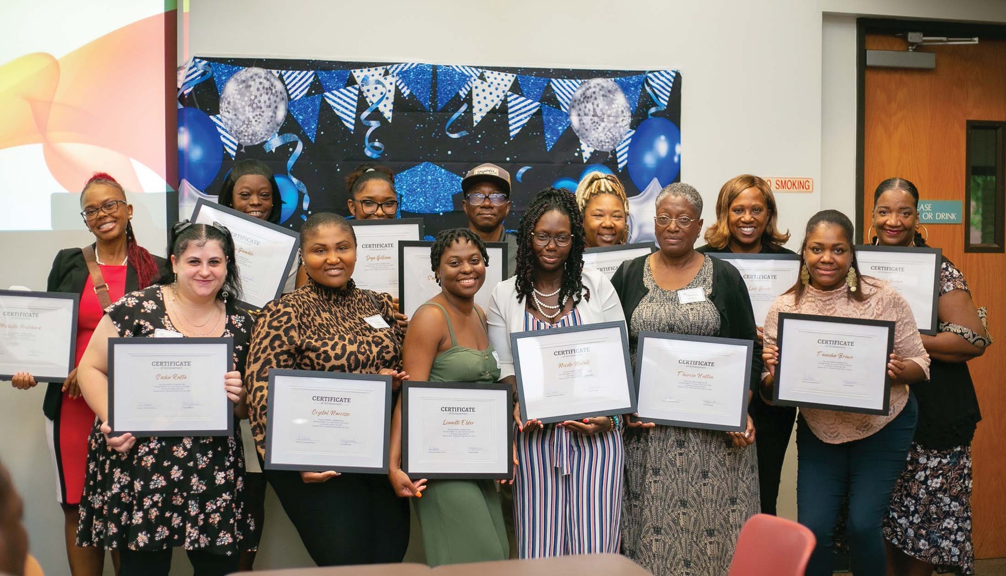 The most recent graduates of the Society of St. Vincent de Paul’s “Getting Ahead” program are all smiles after receiving their certificates for completing the 16-week program that helps participants gain resources and networks to pull themselves out of poverty. (Photo courtesy of the Society of St. Vincent de Paul)