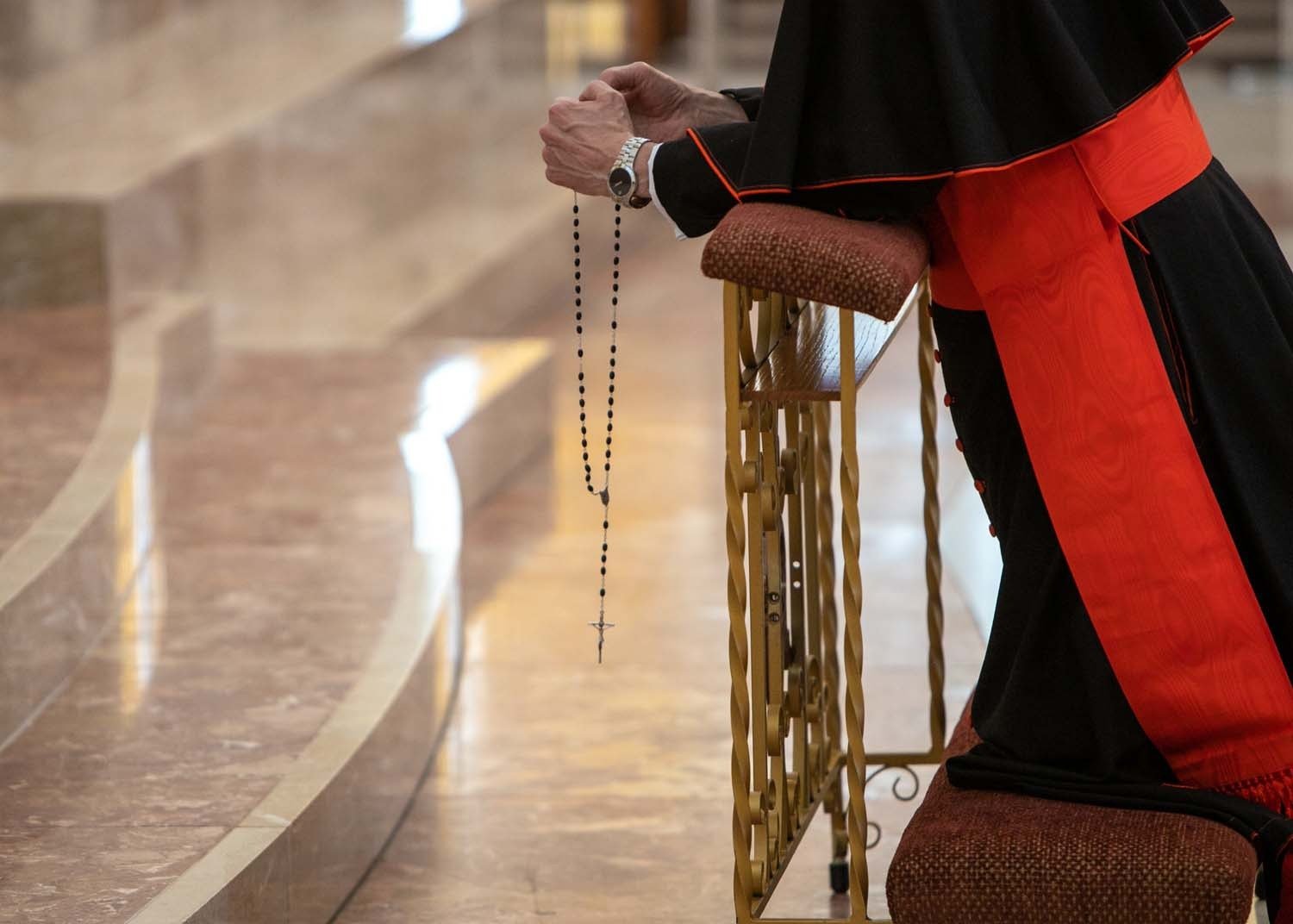 Daniel Cardinal DiNardo prays a Rosary during a unified Rosary prayer service with other U.S. bishops in praying for the United States in October of 2020. (Photo by James Ramos/Herald)