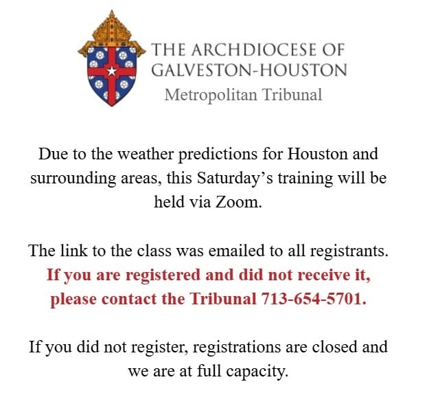 The training will take place at the Co-Cathedral of the Sacred Heart's Cathedral Centre (3rd floor), 1701 San Jacinto Street, Houston, TX 77002.
